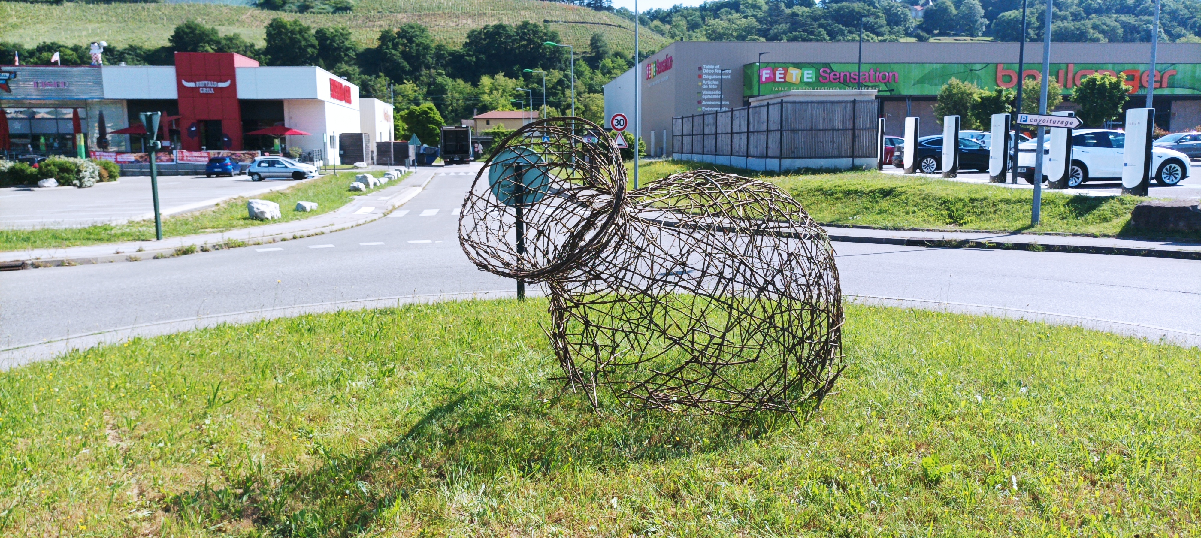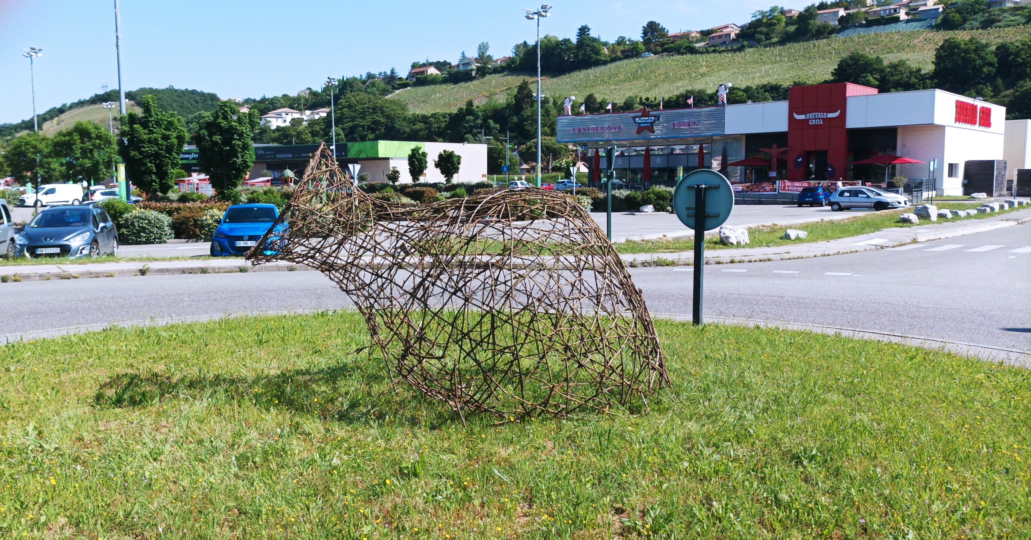 L’œuvre Everything Flows installée au rond-point de l’Intermarché à Chasse-sur-Rhône.