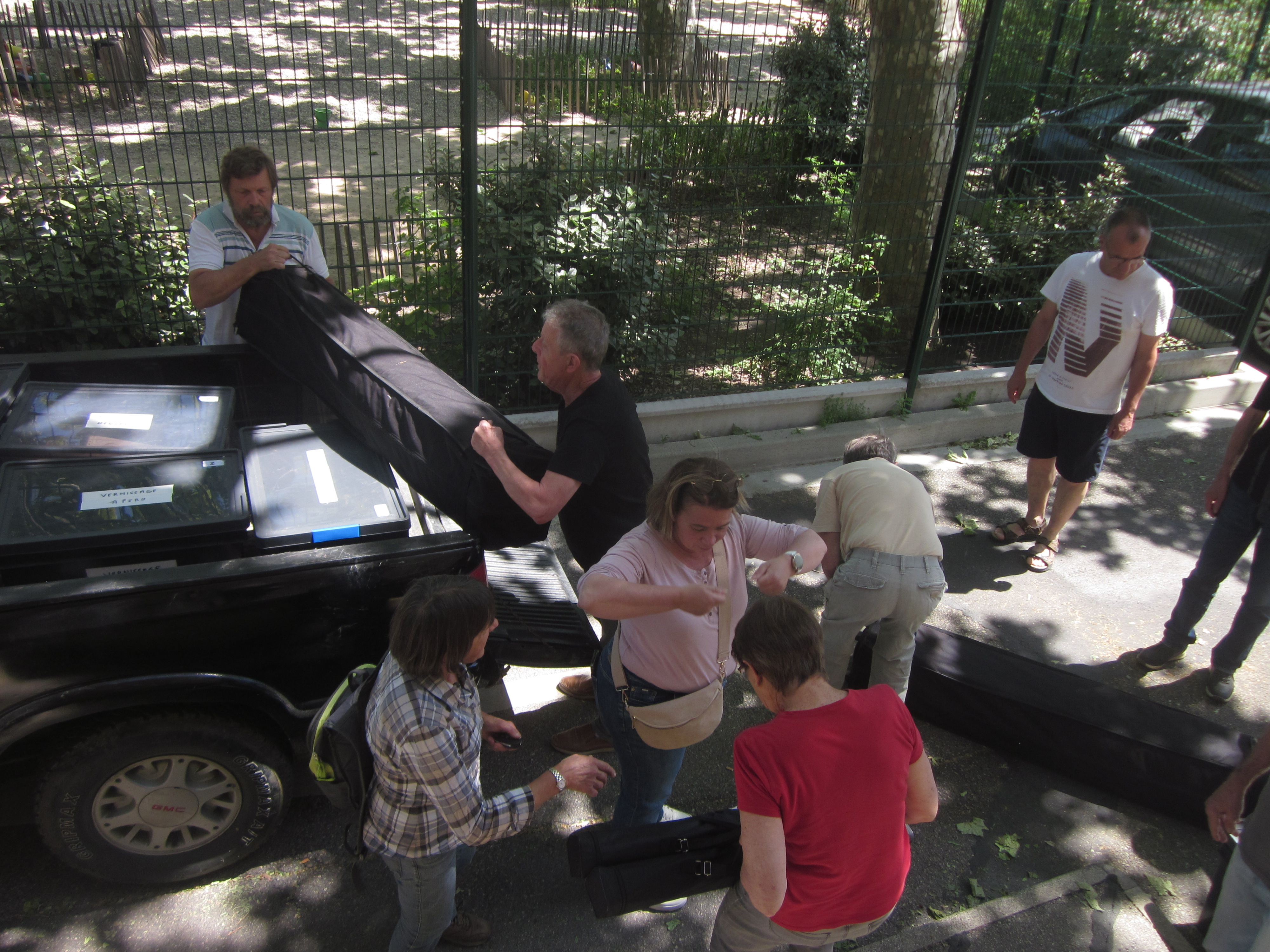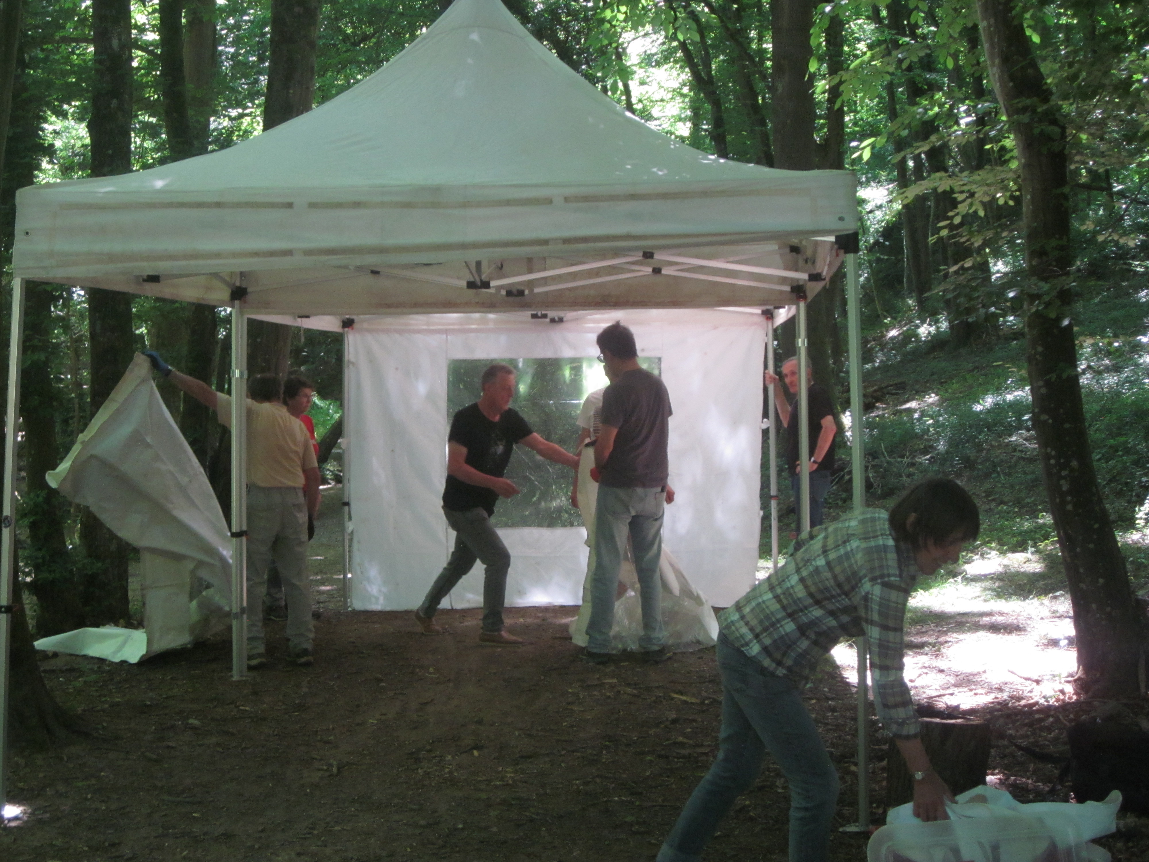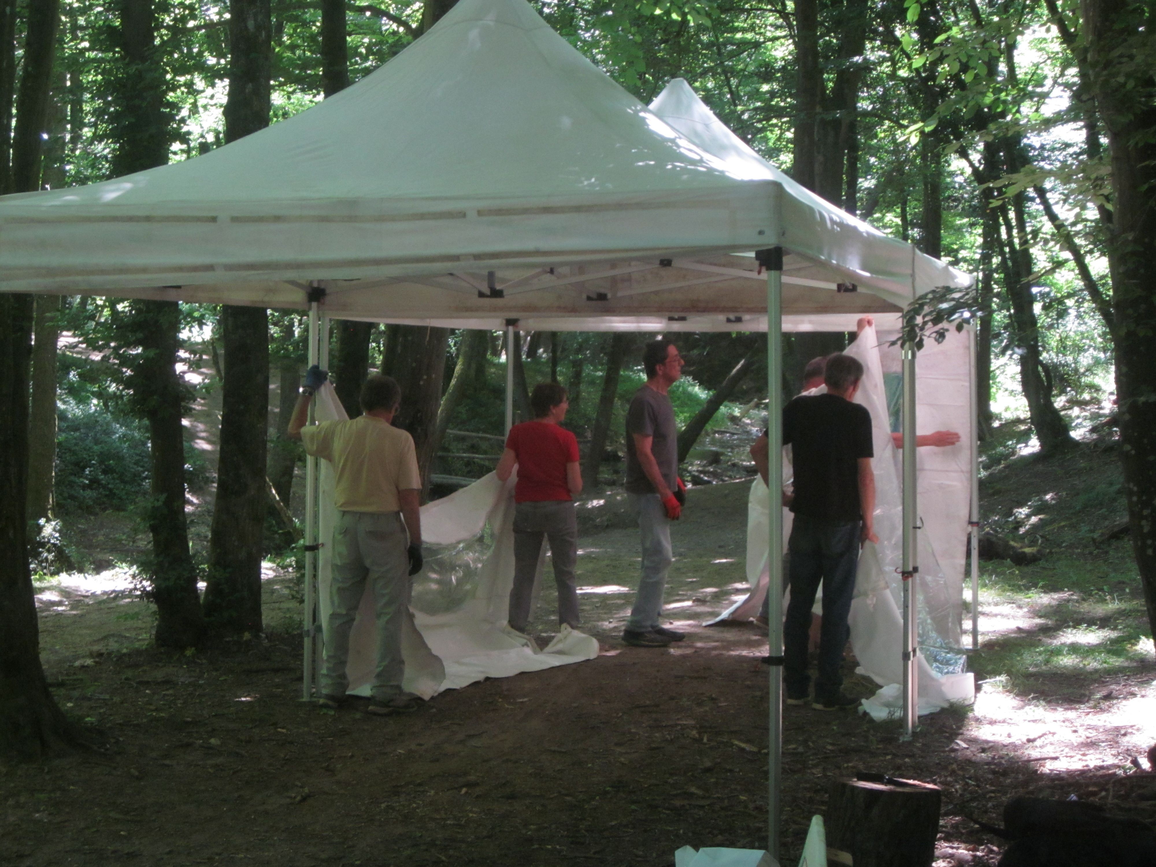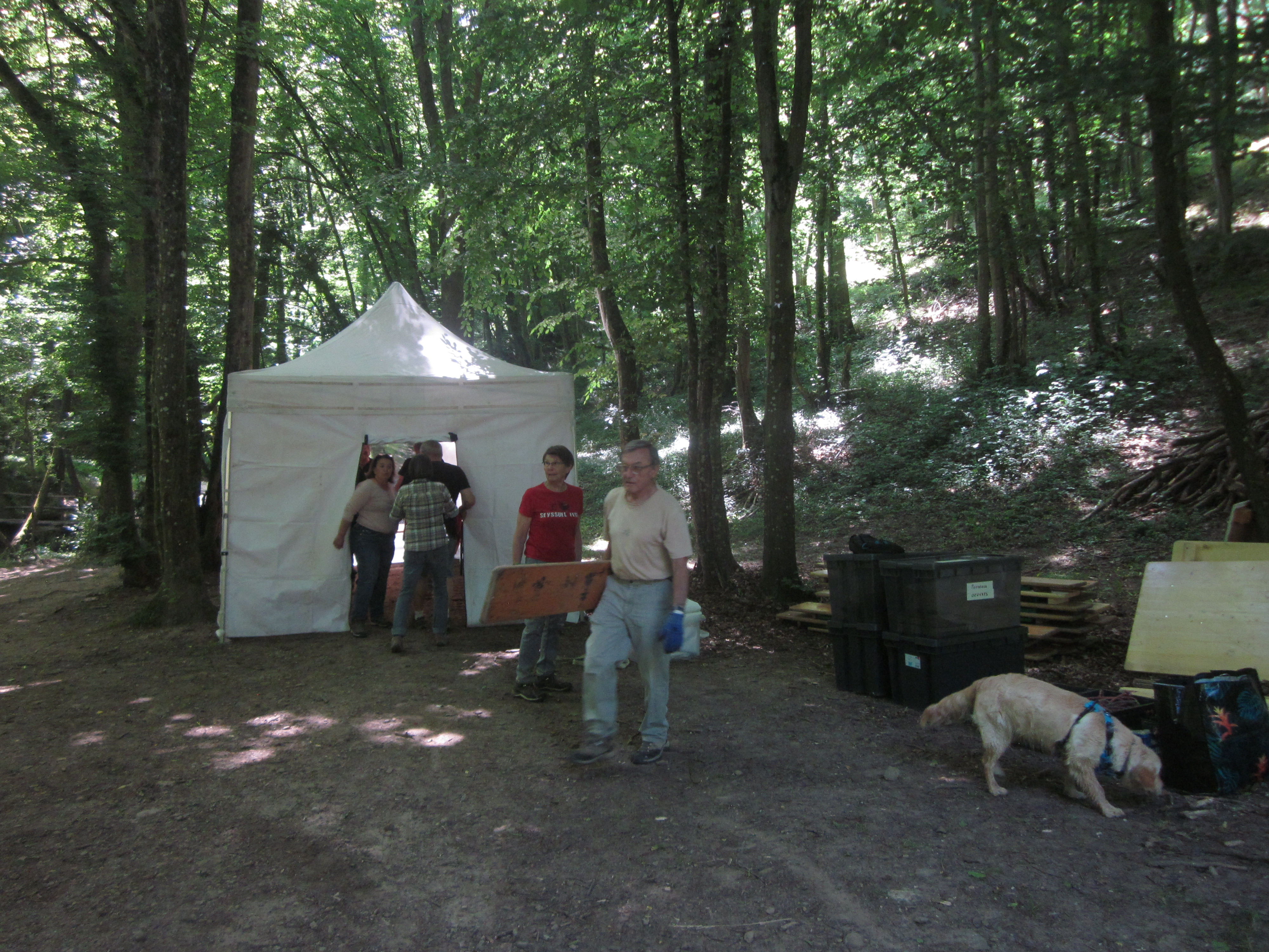 Aujourd’hui, l’équipe du Sentier a installé un barnum au camp de base. Ce lieu central jouera un rôle essentiel pendant toute la semaine de la Biennale.