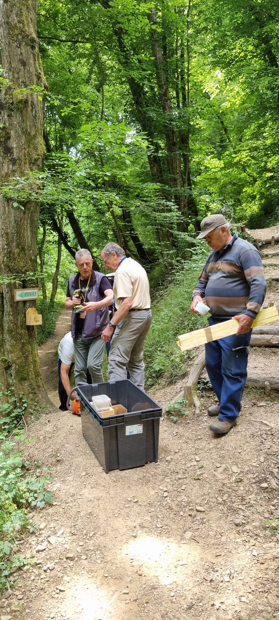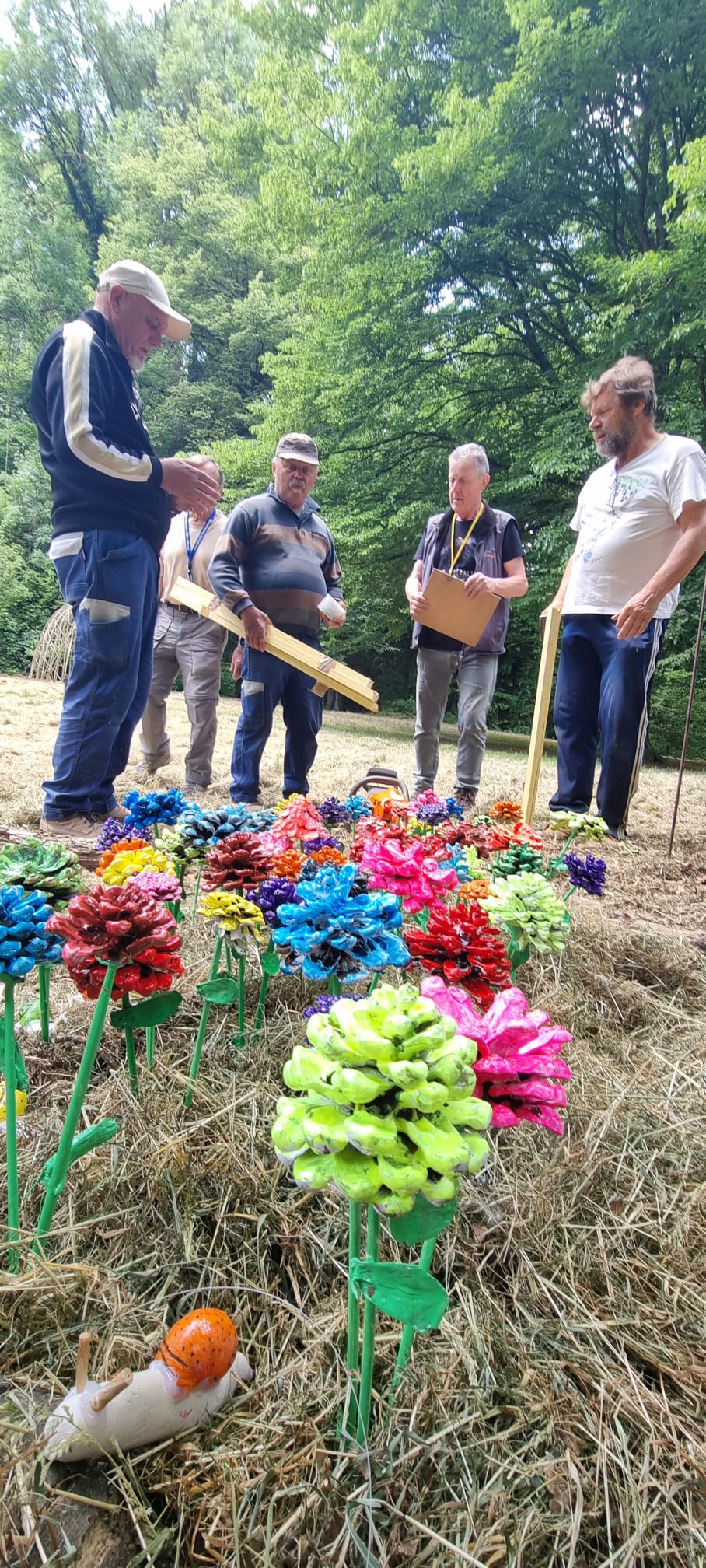 Beaucoup de monde tôt ce matin sur le Sentier Art Nature. Les écoles sont venues installer leurs créations, mais pas question d’en révéler trop pour l’instant – surprise garantie !