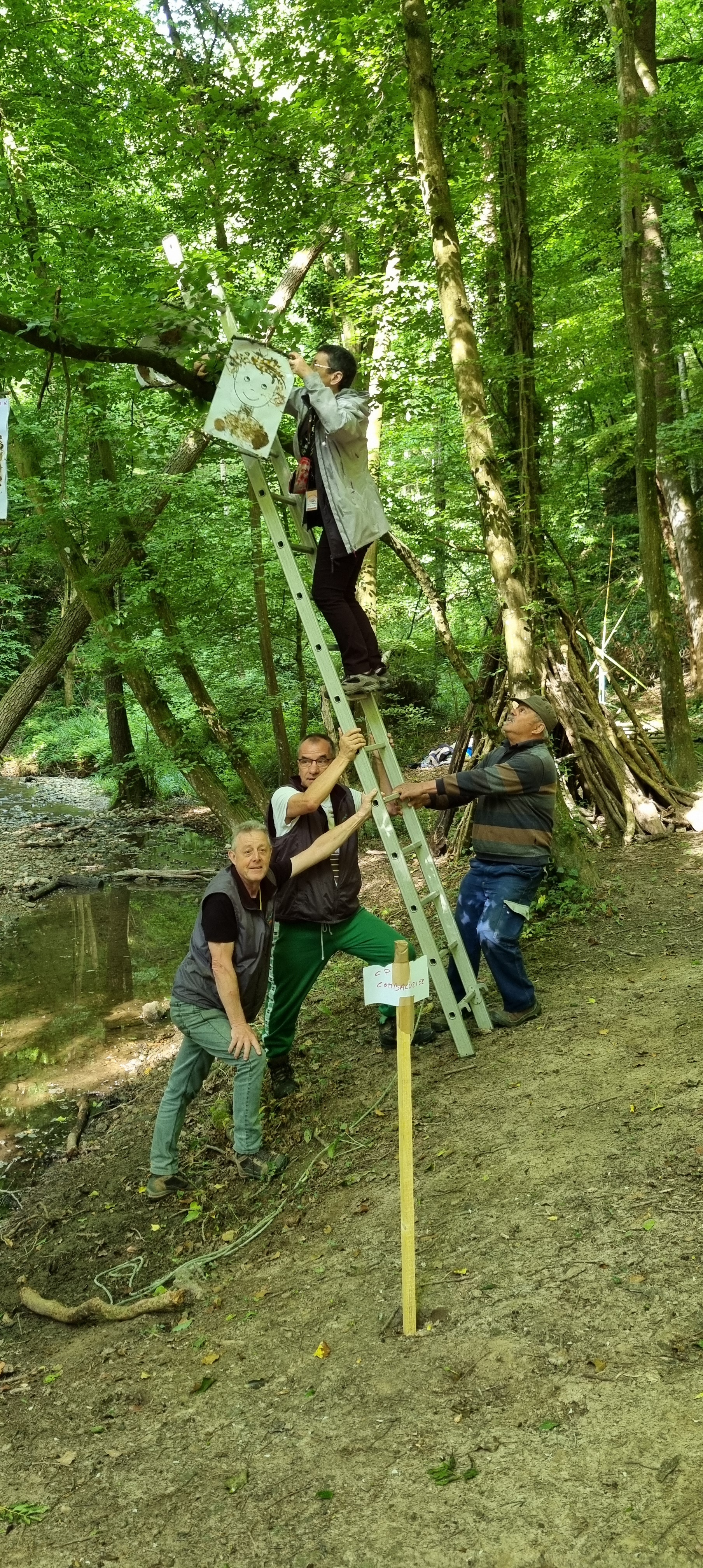 Grâce à une équipe solidaire, chaque création a pu être positionnée avec précision, selon les souhaits des artistes, tout en assurant une mise en valeur idéale pour les visiteurs. Une belle démonstration de collaboration et de minutie au service de l’art. 🌿🎨🔧