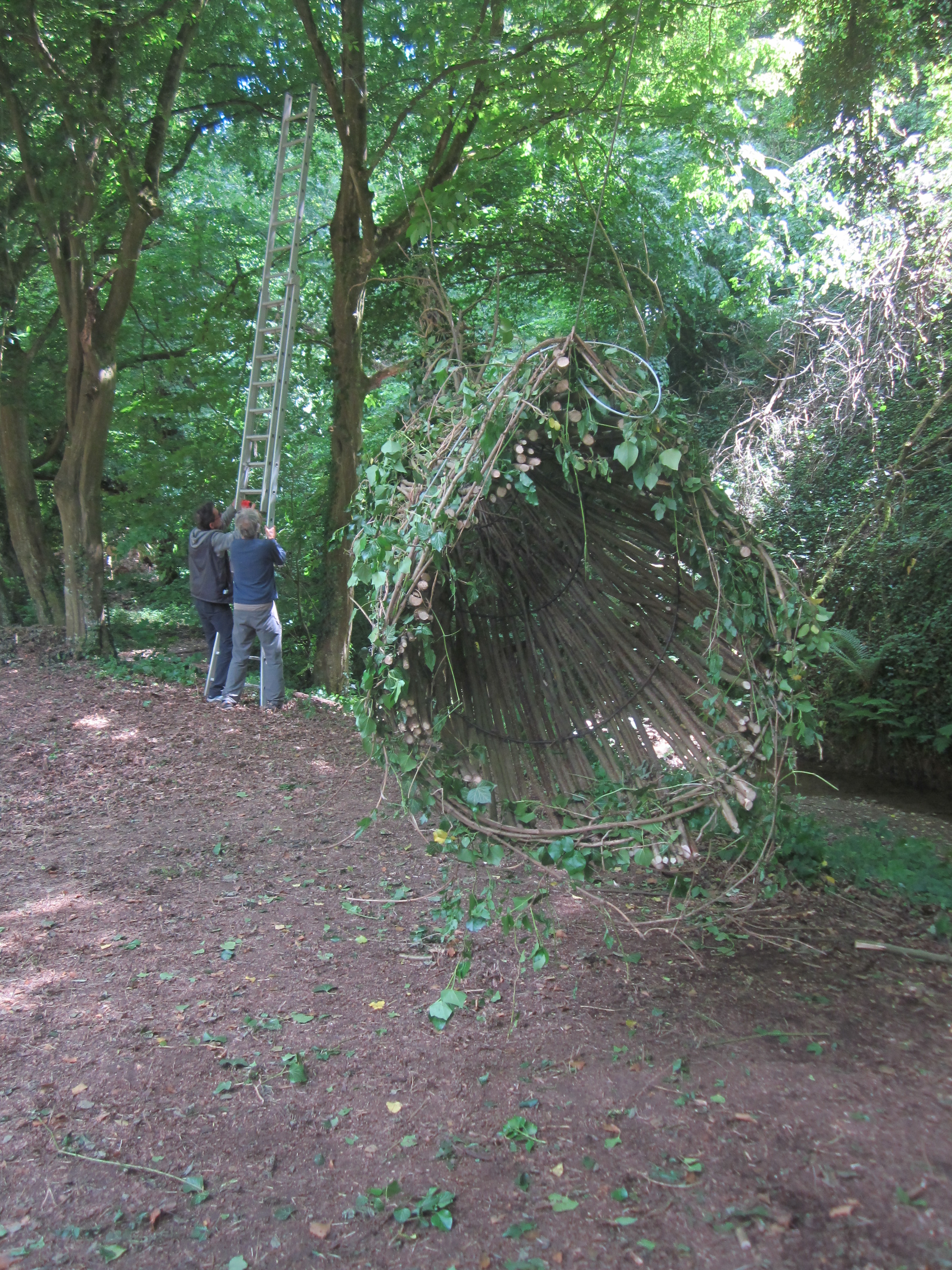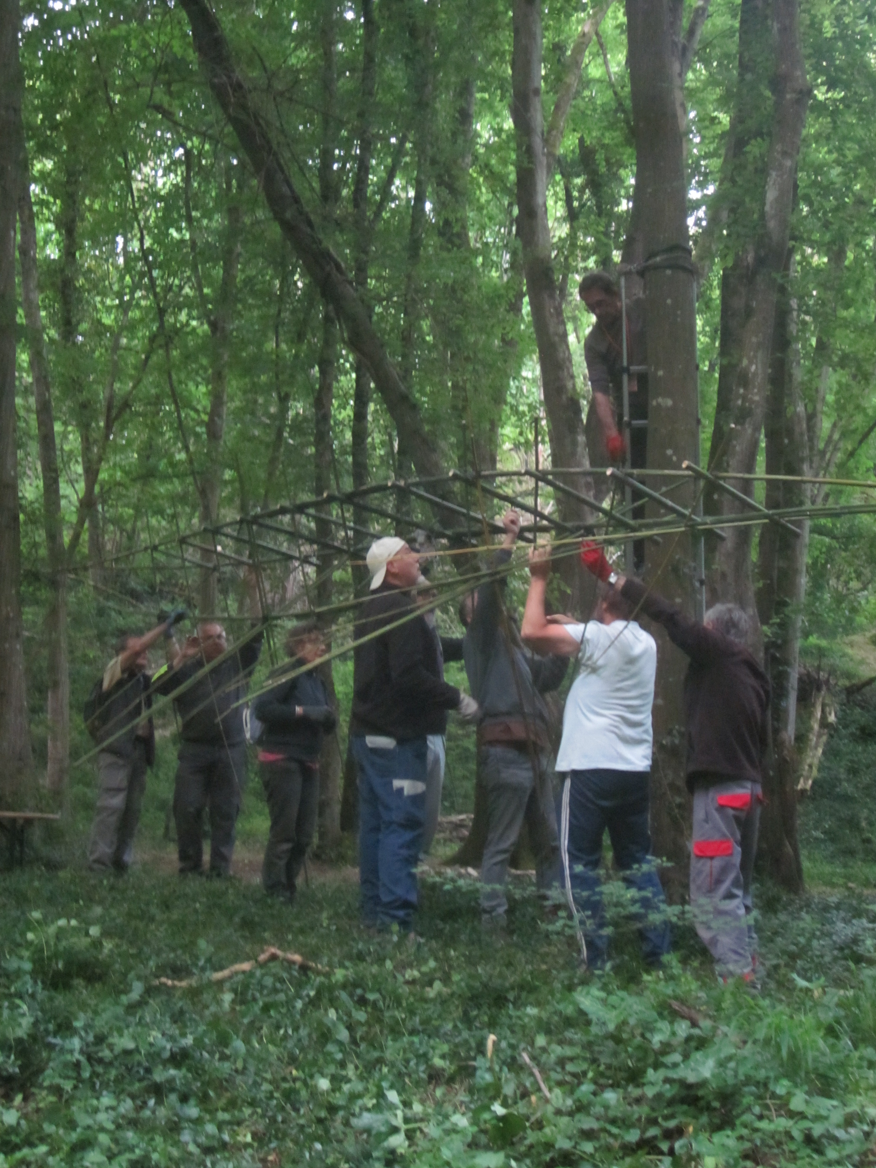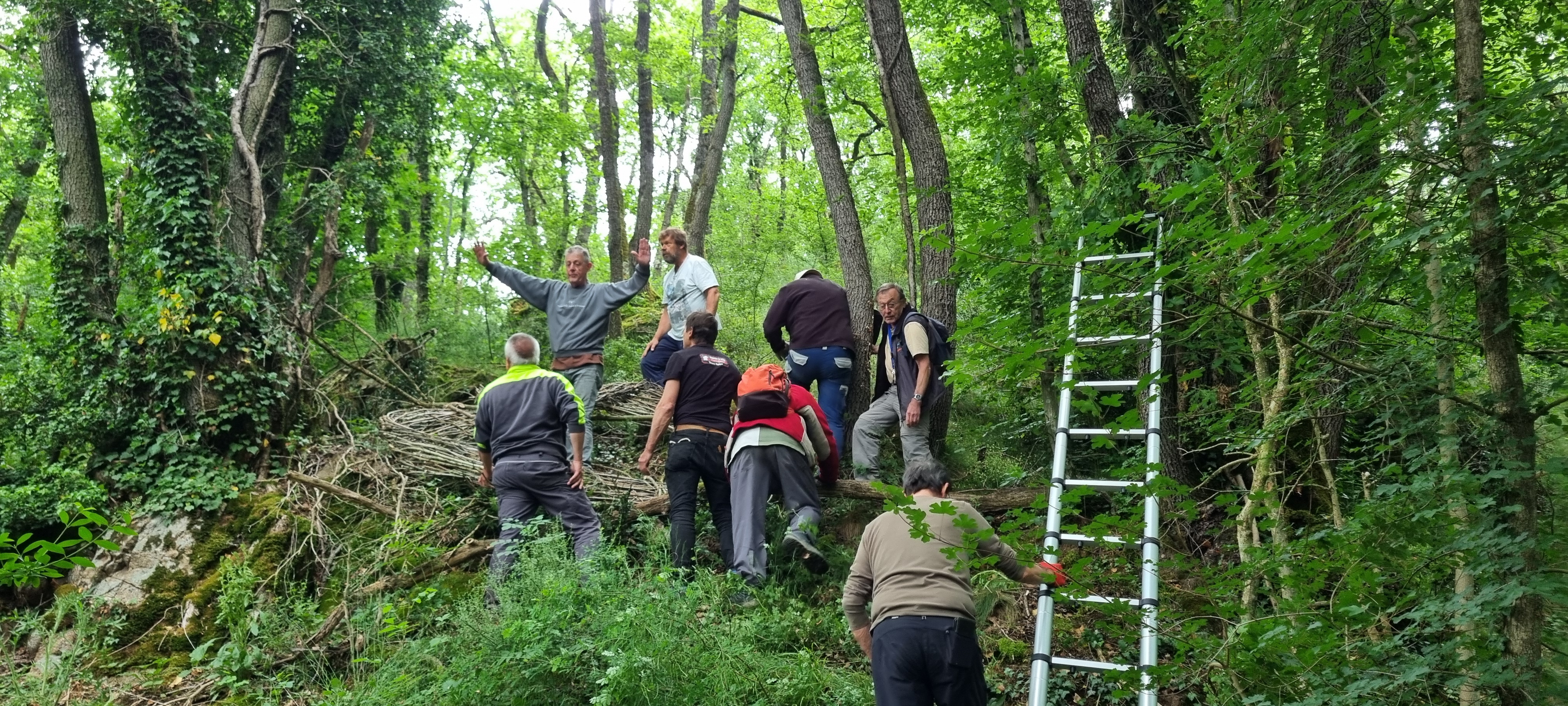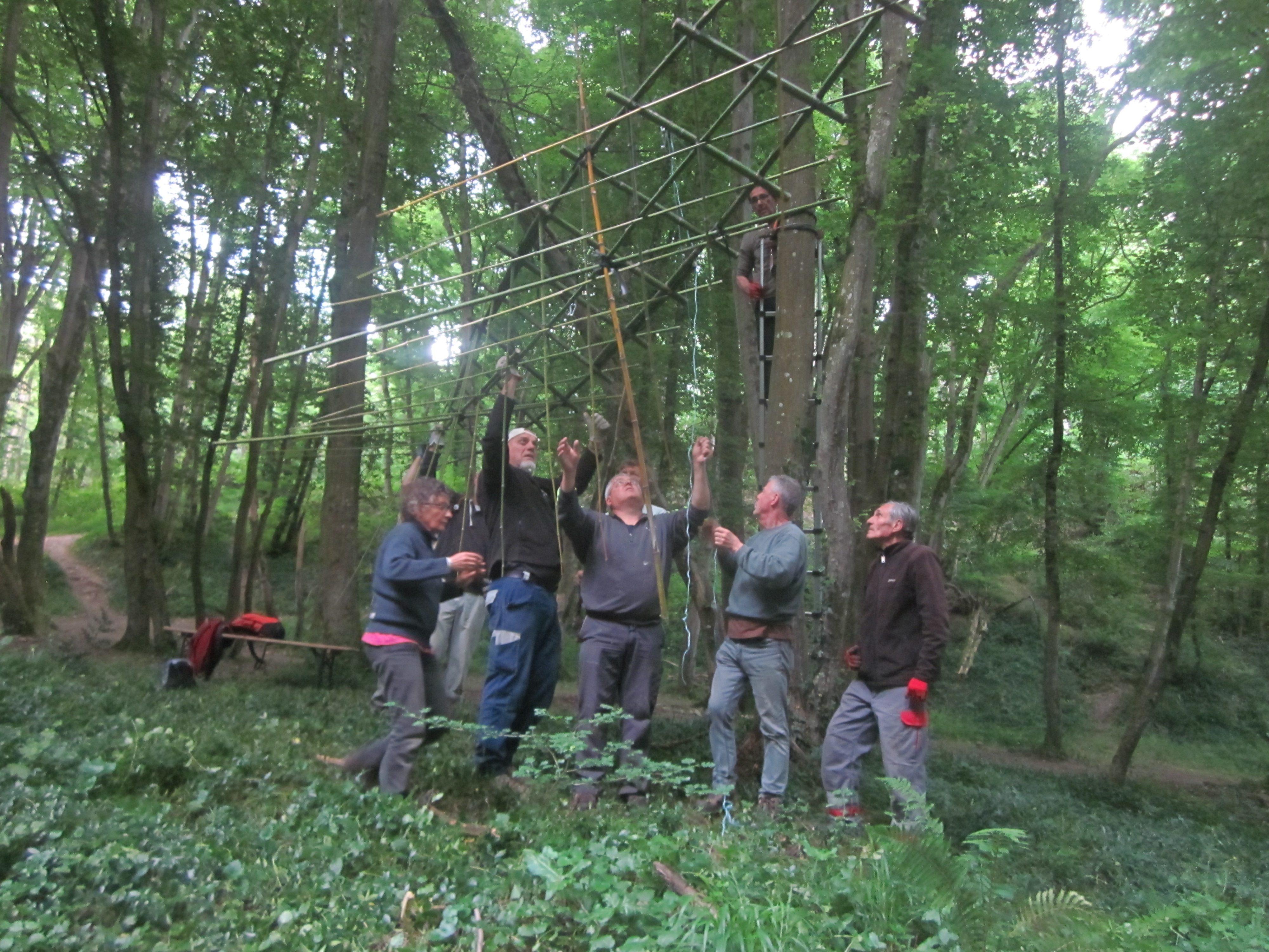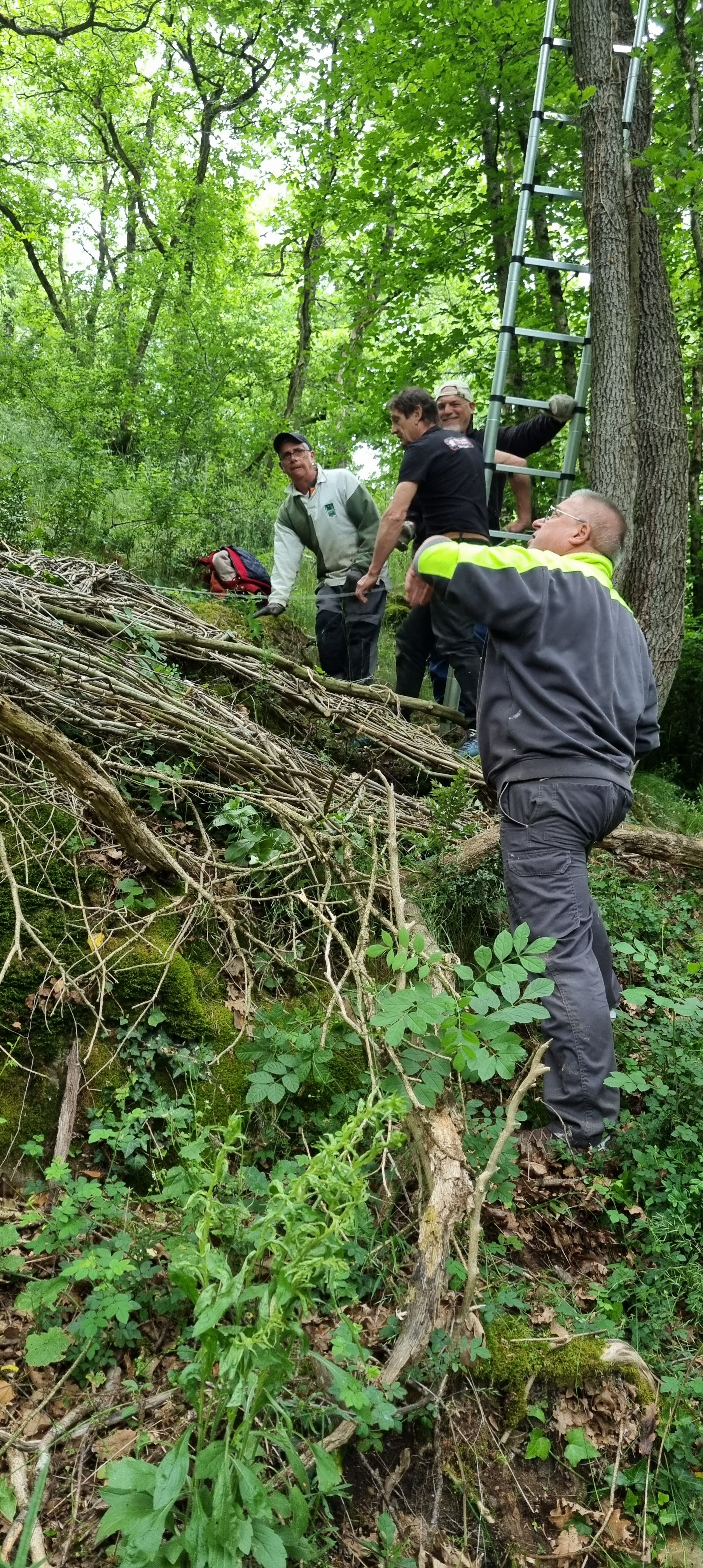 Découvrez en images les différentes étapes de fixation des câbles qui suspendent une grande partie des œuvres du Sentier Art & Nature Le Gorneton. Si les œuvres relèvent de l’art, être en équilibre sur une échelle pour les installer en est un autre !