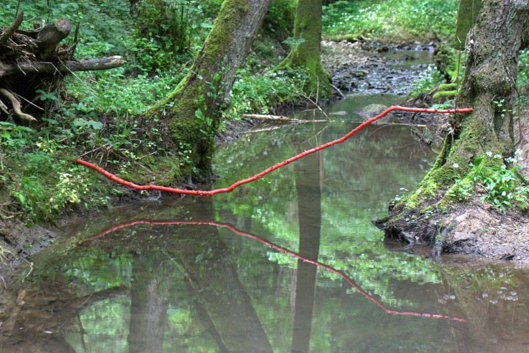 Cet espace est aussi interrogé par la suspension de la branche. Le temps semble s’arrêter, pourtant l’eau du torrent continue sa route. L’instant suspendu interroge ici l’écoulement du temps. Serait-il constitué d’instants ? »