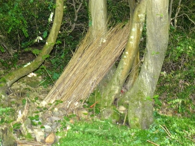 « Inspiré d’une toile intitulée « Pilier et Océan », ce travail est une installation sonore de la nature elle-même, avec des sons et des tonalités diverses en fonction du calibre des branches utilisées.