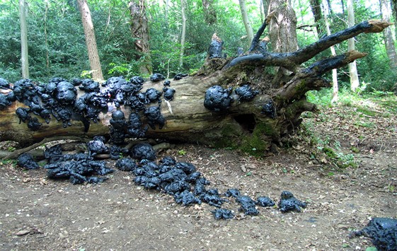 Ces scarabées semblent sortir (naître) des arbres, l’insecte fait corps avec ses éléments (terre/bois). Les scarabées se dirigent vers le sentier, tels une armée, certains d’entre eux tiennent entre leurs pinces des objets en or.