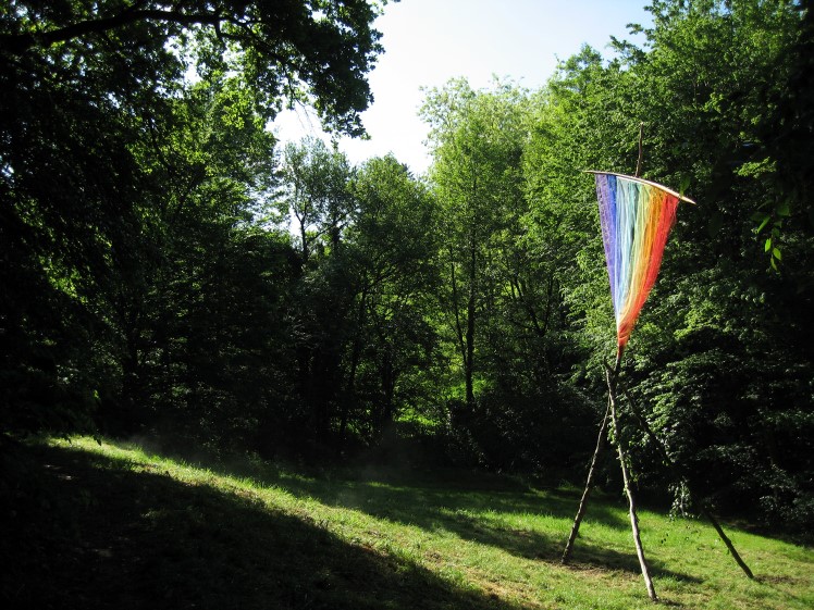 Un arc de tulles colorés joue avec les nues et la lumière, les gouttes de pluie et la rosée, les arbres et les ombres.