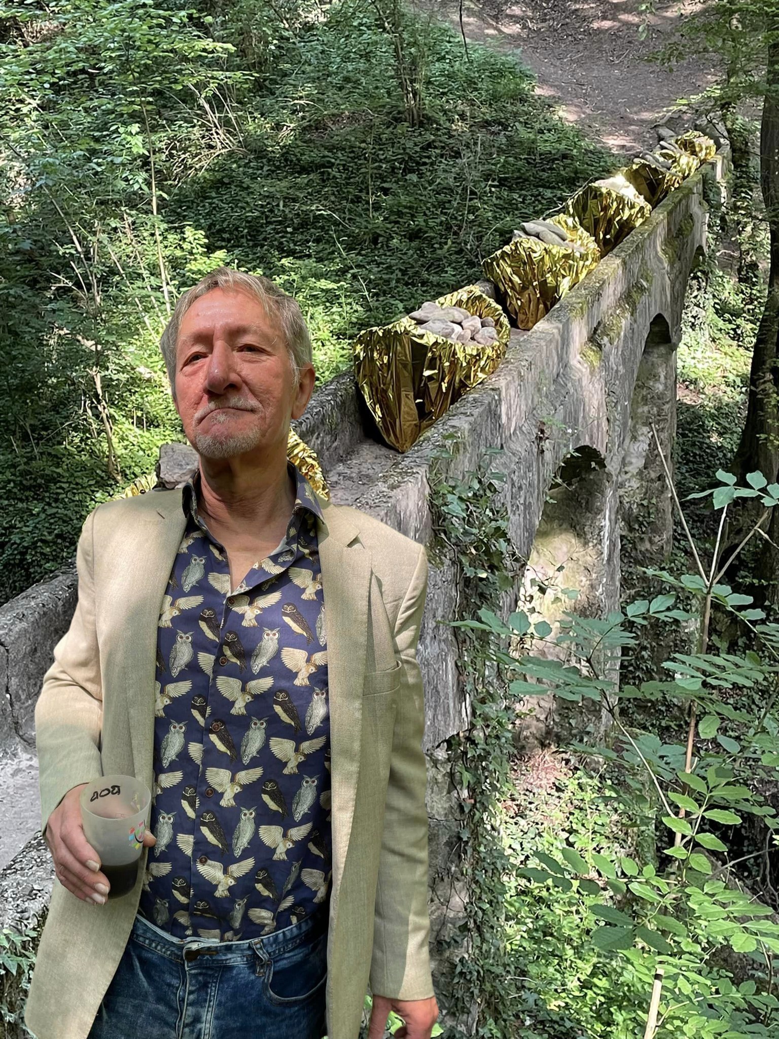 « Je créerai plusieurs petits bateaux dorés sur le viaduc, en contrepoint aux couleurs naturelles de la nature, comme des instants de fantaisie traversant le petit ruisseau en contrebas. »